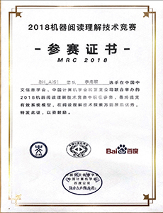| 智慧城市國際會議優秀報告獎 | 2018年機器閱讀理解技術競賽參 賽 |