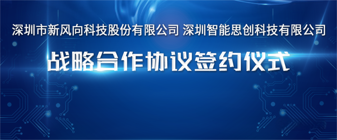 2023年10月30日,深圳智能思創科技有限公司(以下簡稱“智能思創”)攜手深圳市新風向科技股份有限公司(以下簡稱“新風向”)簽訂戰略合作協議,雙方將充分發揮各自商務、產品和技術優勢,共享相關市場資源信息,以實現更有利的合作。